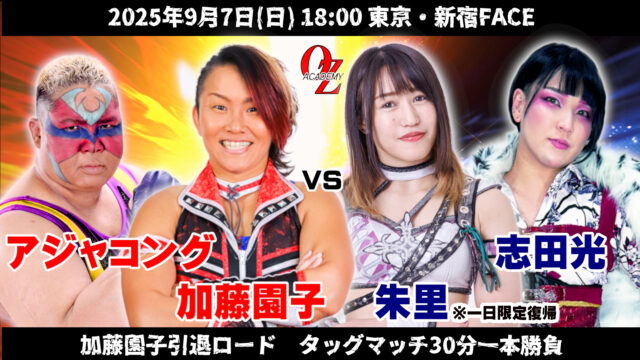 Fondée par la légendaire Mayumi Ozaki, Oz Academy propose un joshi sombre, intense et axé sur les factions heel. Avec une esthétique underground et une atmosphère plus adulte, la promotion mise sur des rivalités brutales, du storytelling noir et un casting mêlant vétéranes redoutables et talents confirmés.